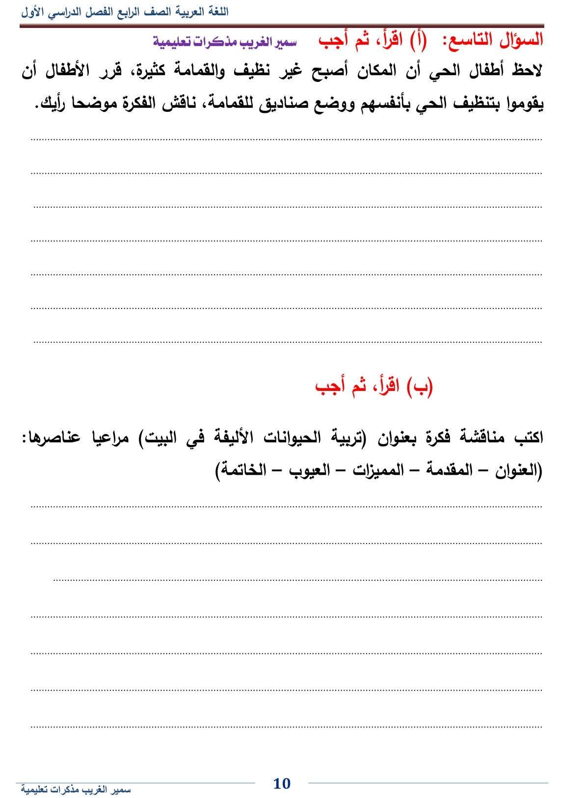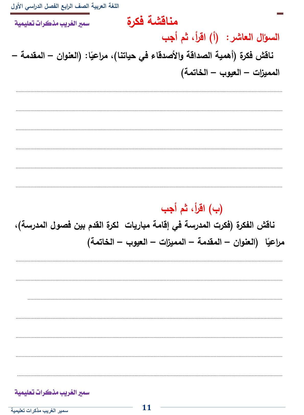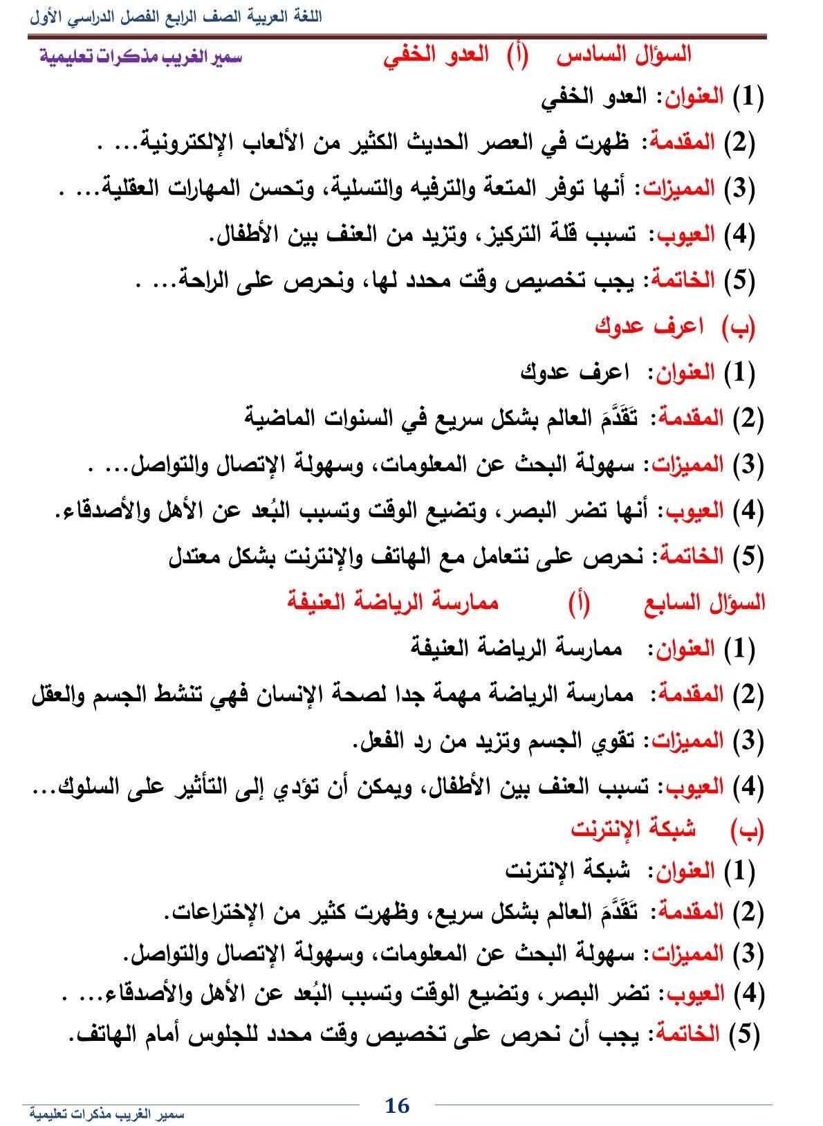 - اللغة العربية الصف الرابع الابتدائي