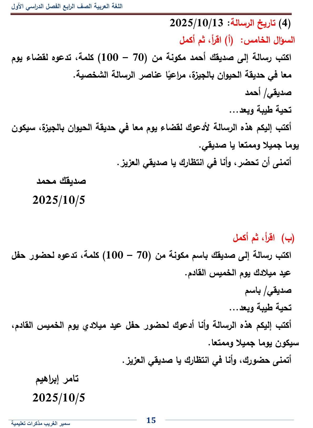 مراجعات نهائية.. وتحميل أهم موضوعات التعبير الكتابي، تضمن لك دخول الامتحان وهو في جيبك، لطلاب وطالبات الصف الرابع الابتدائي، من خلال امتحانات اللغة العربية، تضمن لك مراجعات نهائية في منهج الفصل الدراسي الأول، والتى تعد مرجعا أساسيا في مراجعات نهائيه، لمقرر المنهج الدراسي للعام الدراسي الجاري 2025-2026، أعدها خبراء المادة في وزارة التربية والتعليم، من أجل مراجعات نهائيه لطلاب الصف الرابع الابتدائي.