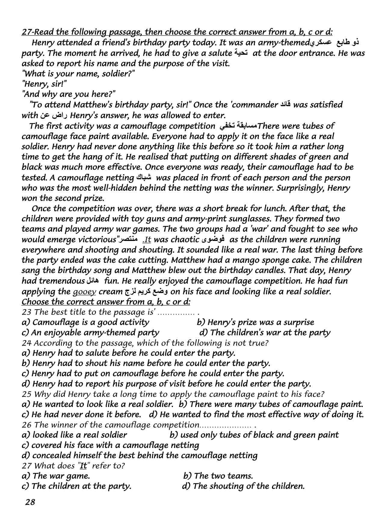 - 11 قطعة بالاجابات لغة انجليزية لـ الثانوية العامة