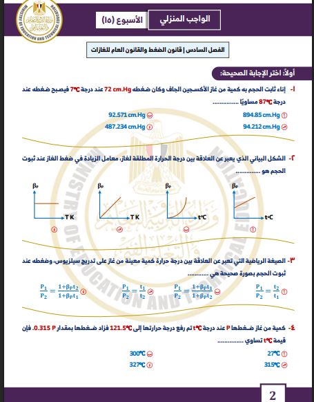 مراجعات نهائية.. أسئلة تقييم الأسبوع الـ 15 الفيزياء الصف الثاني الثانوي