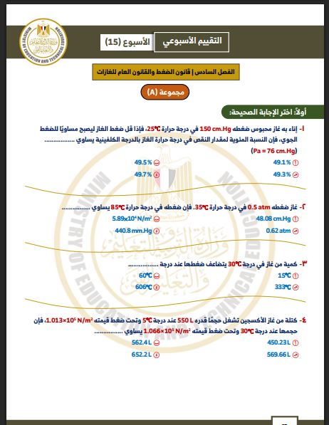 - تقييمات الأسبوع الـ 15 الصف الثاني الثانوي