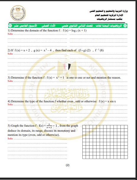 - حل التقييم الاسبوعي للصف الثاني الثانوي رياضيات بحتة لغات