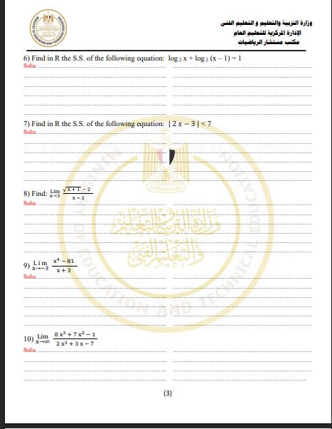 - مراجعات نهائيه امتحان الرياضيات البحتة لغات ثانية ثانوي
