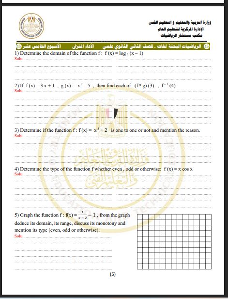 - التقييم الاسبوعي للصف الثاني الثانوي الرياضيات البحتة لغات
