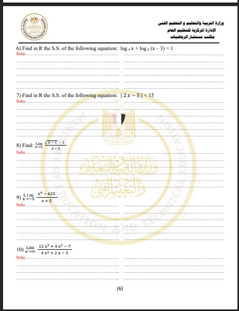 مراجعات نهائية.. أسئلة تقييم الأسبوع الـ 15 الرياضيات البحتة الصف الثاني الثانوي