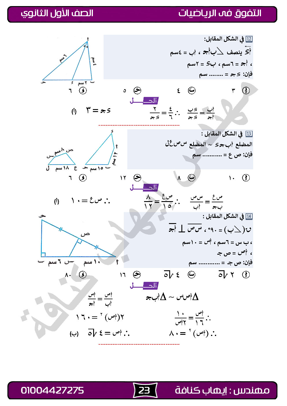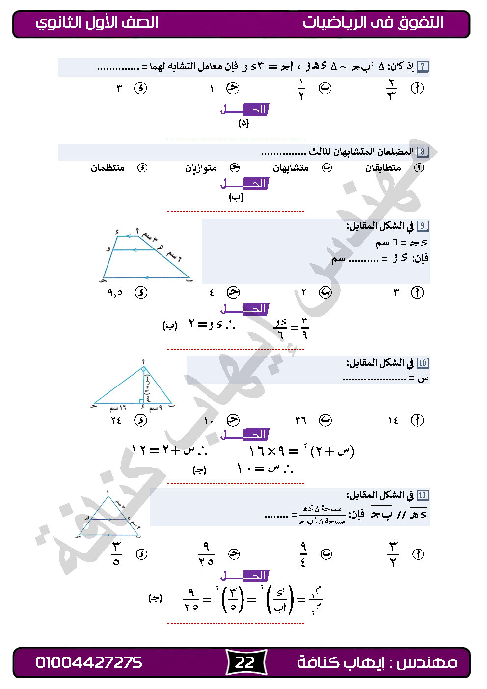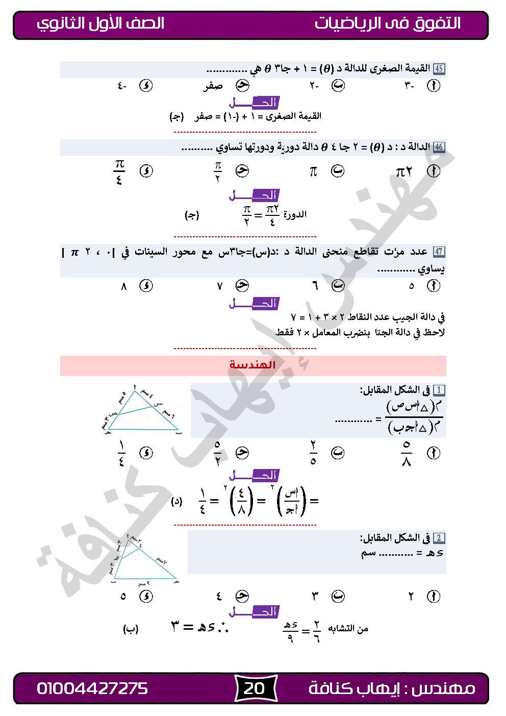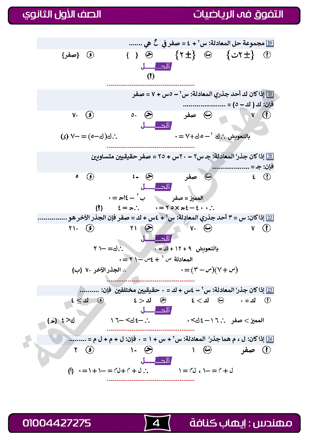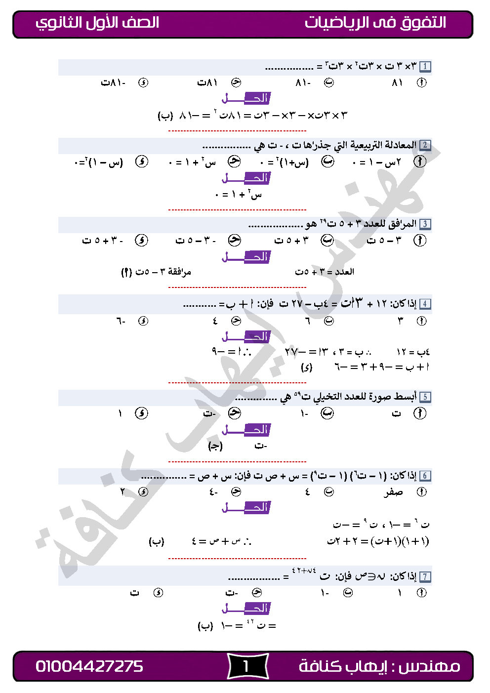 - مراجعات نهائيه امتحان الرياضيات أولى ثانوي