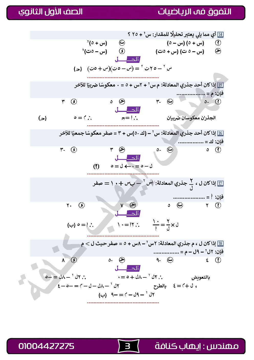 أقوى مراجعة في ليلة امتحان الرياضيات الصف الأول الثانوي