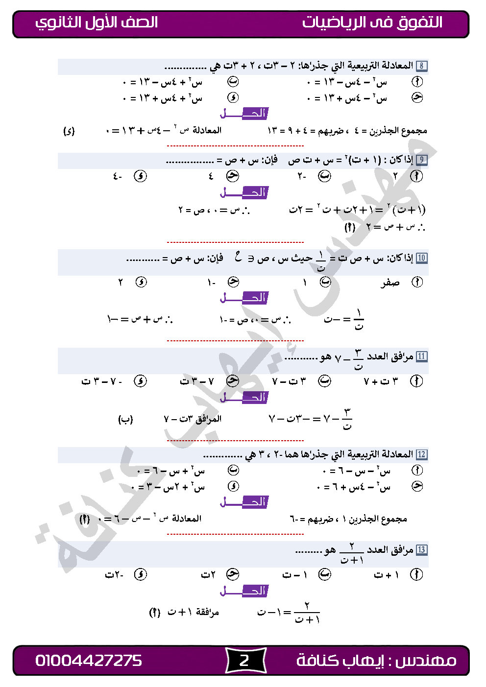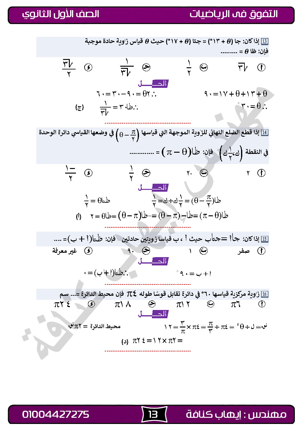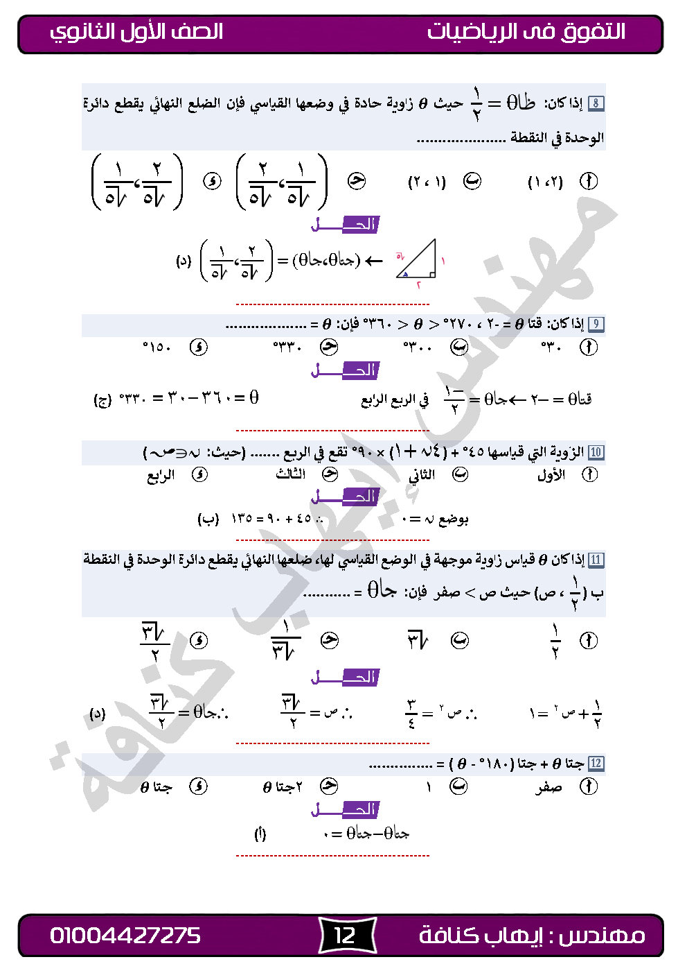 - مراجعة ليلة امتحان الرياضيات في 12 ورقة