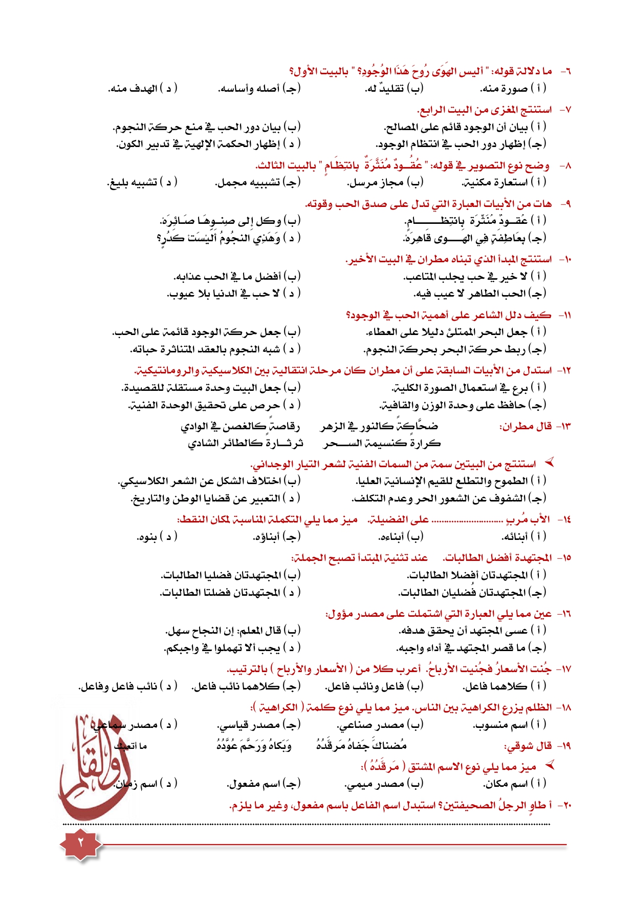 - مراجعات نهائيه امتحان عربي الثانوية العامة