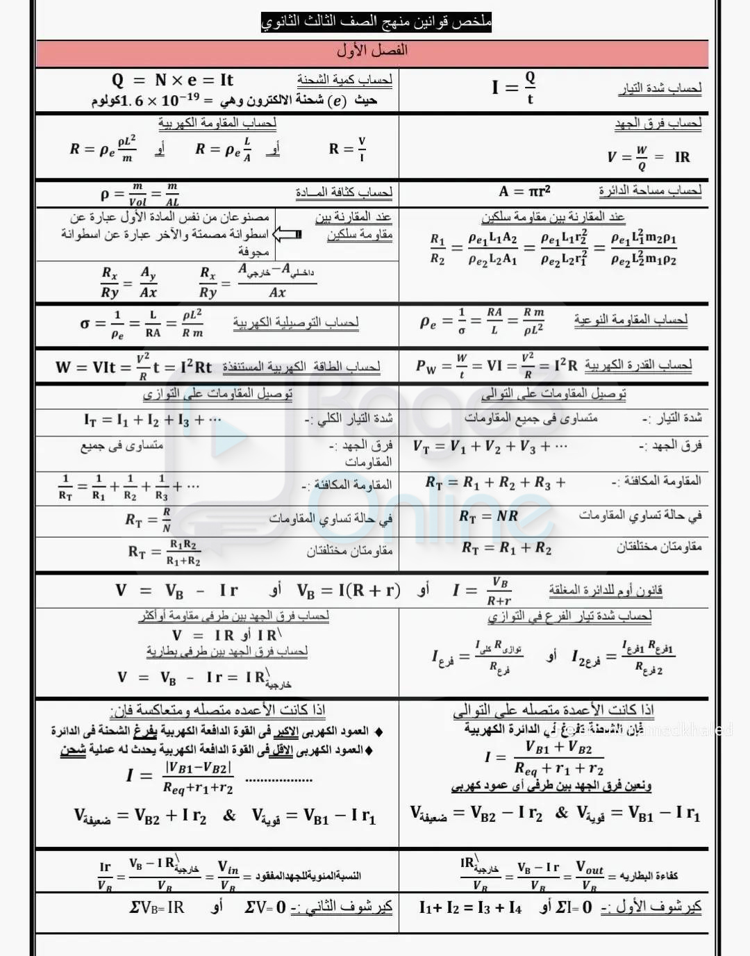 - ملخص قوانين الفيزياء لـ الثانوية العامة