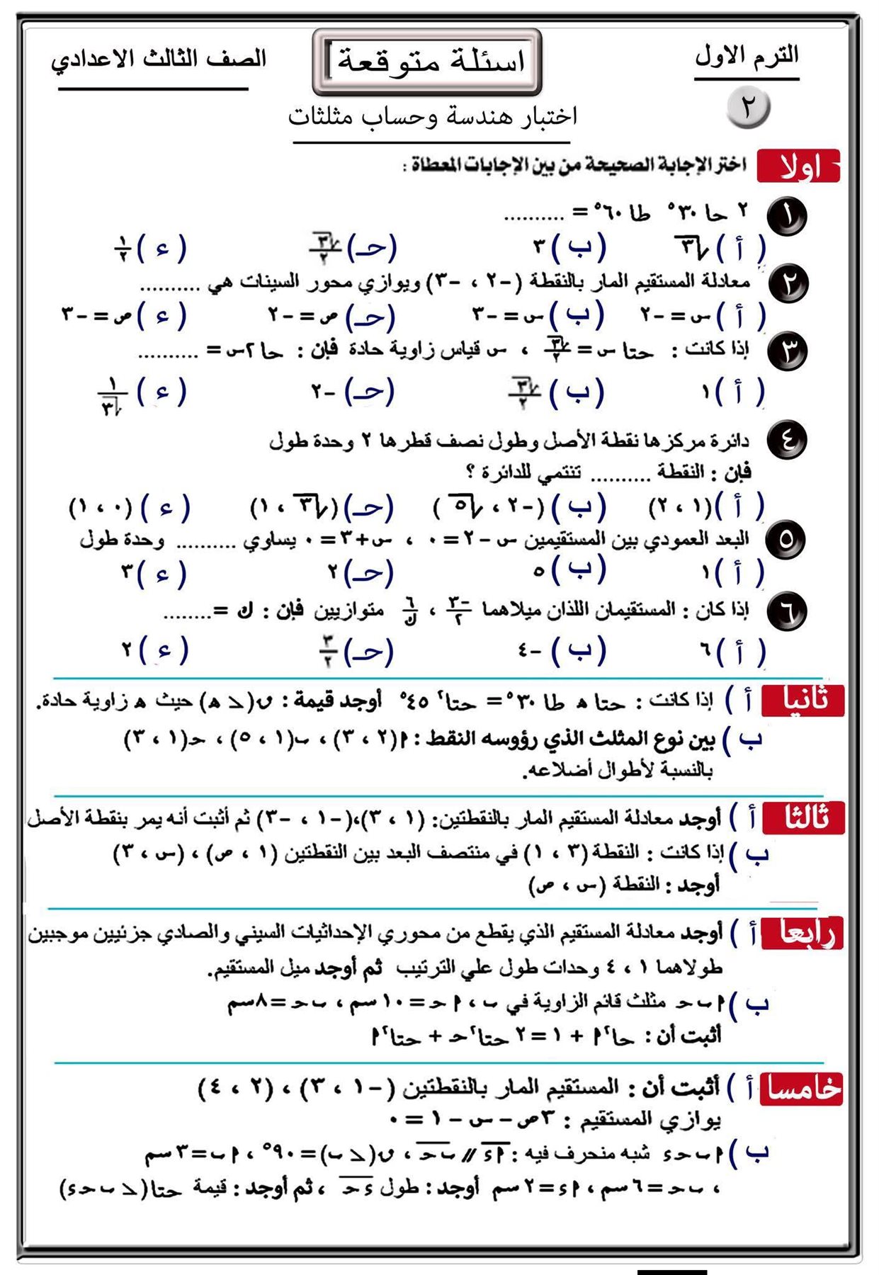 - جبر وهندسة ثالثة اعدادي