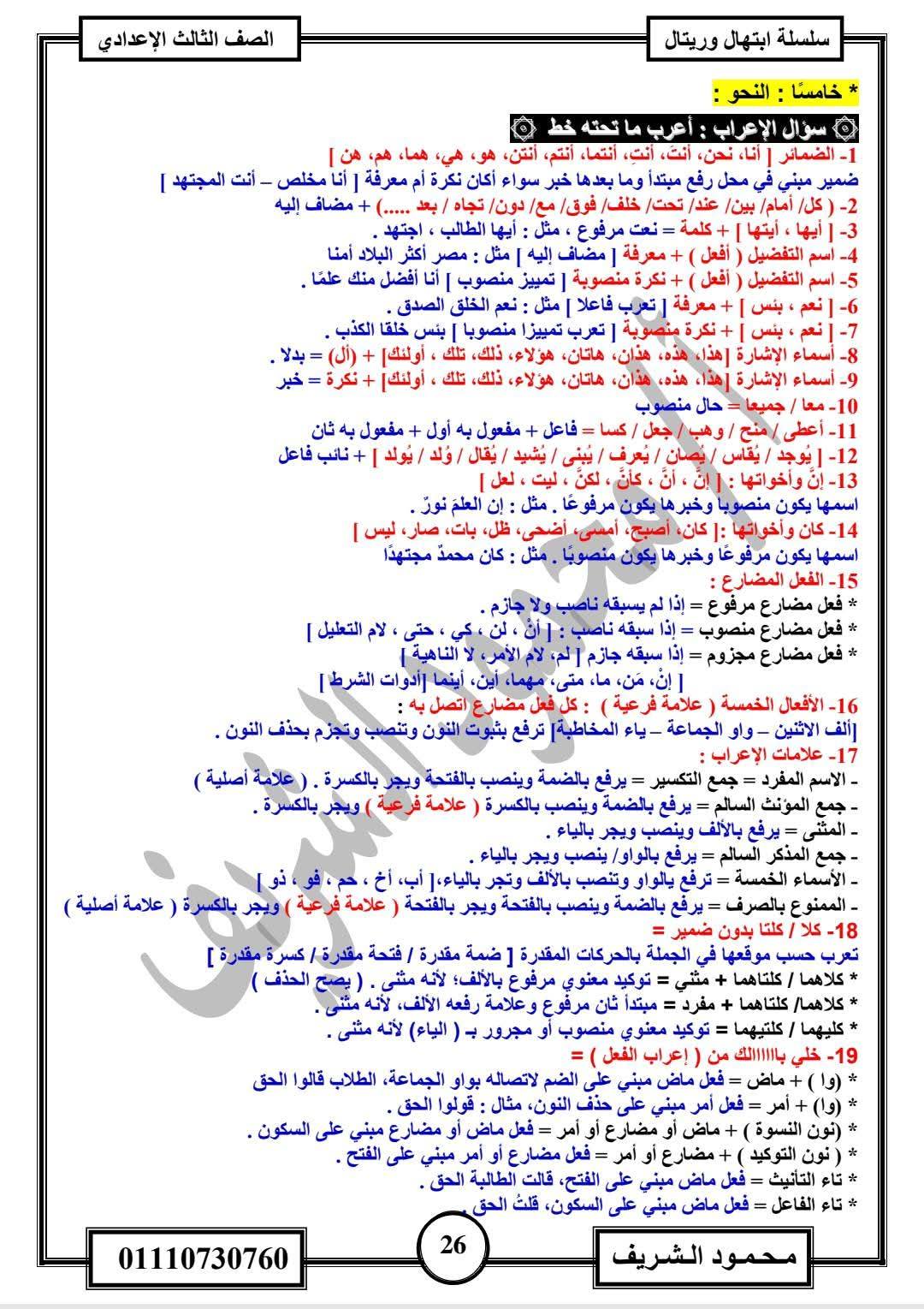 أقوى مراجعة في ليلة امتحان النحو الشهادة الاعدادية