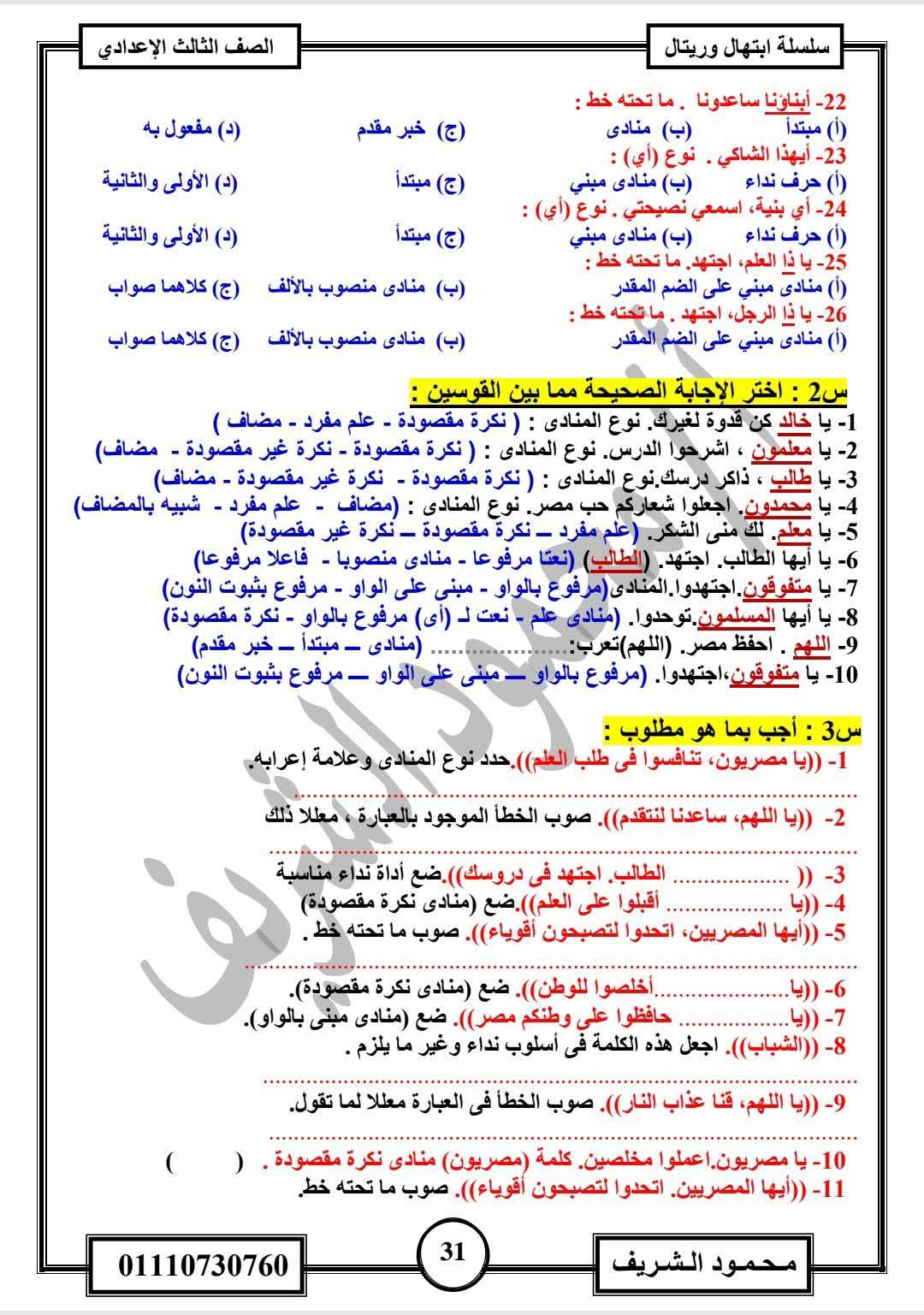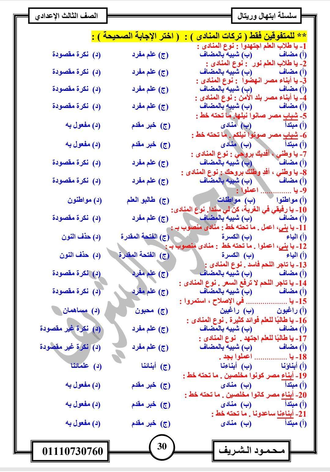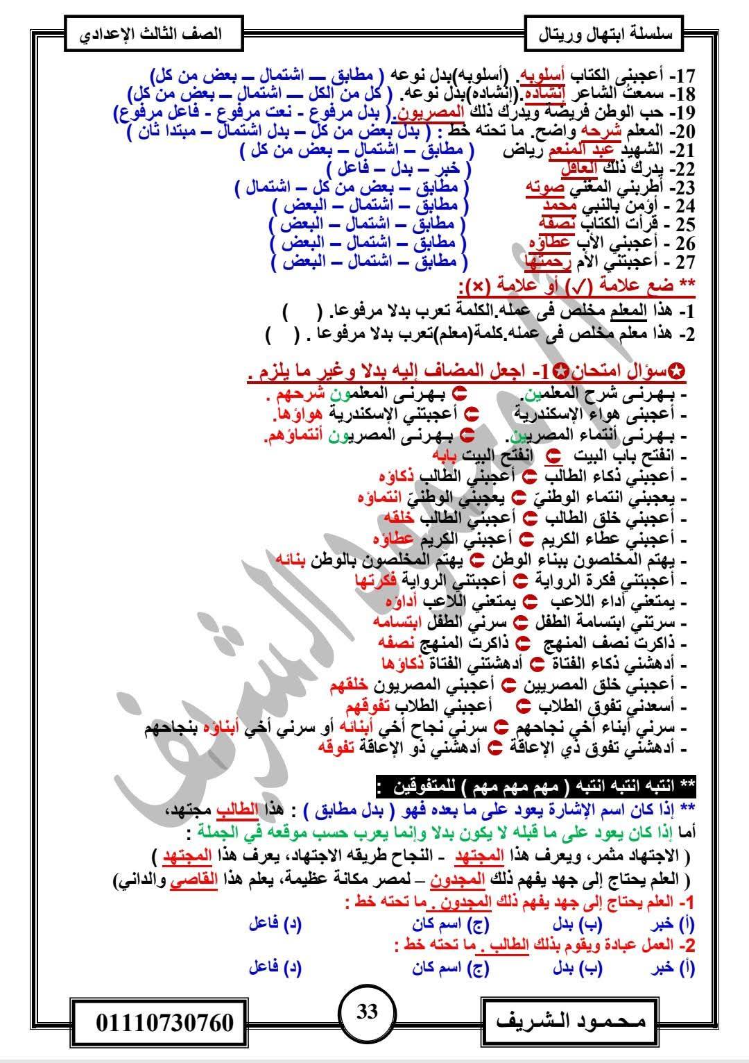 - اللغة العربية الصف الثالث الإعدادي