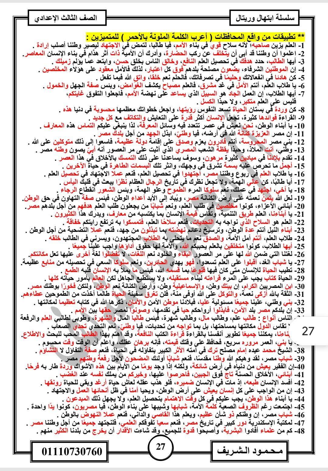 - مراجعات نهائيه امتحان اللغة العربية ثالثة إعدادي