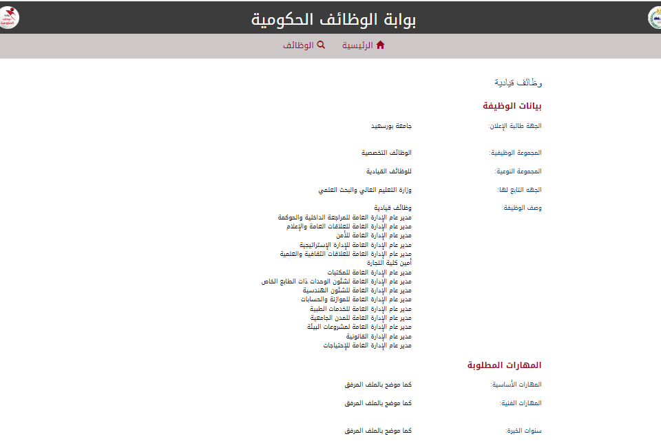 وتتضمن الوظائف القيادية المطلوبة بجامعة بورسعيد عددًا من المناصب المهمة، من بينها مدير عام الإدارة العامة للمراجعة الداخلية والحوكمة، ومدير عام الإدارة العامة للعلاقات العامة والإعلام، ومدير عام الإدارة العامة للأمن، إلى جانب مدير عام الإدارة العامة للإدارة الاستراتيجية، ومدير عام الإدارة العامة للعلاقات الثقافية والعلمية.