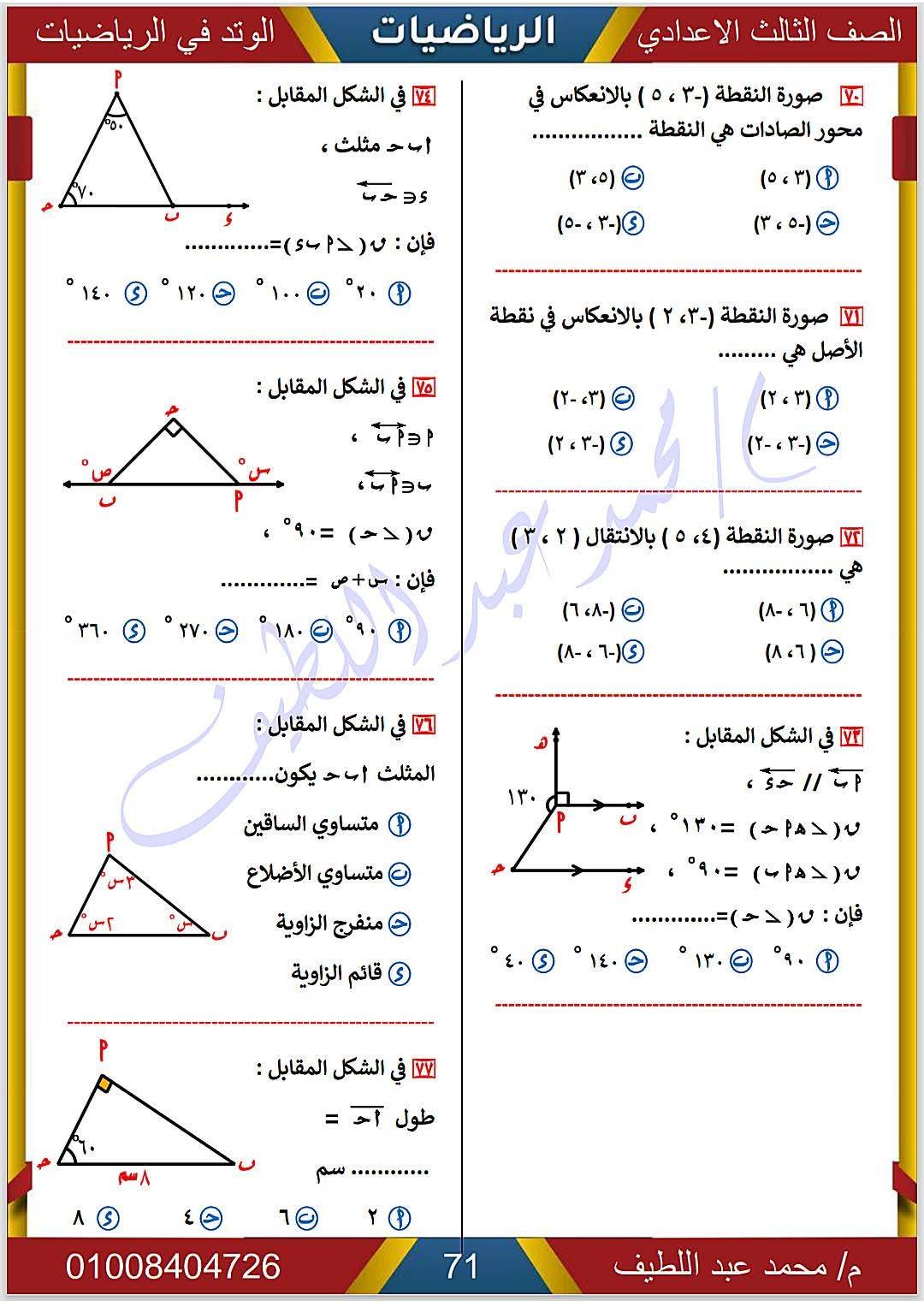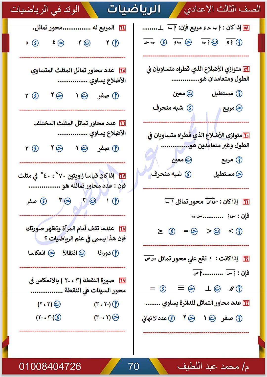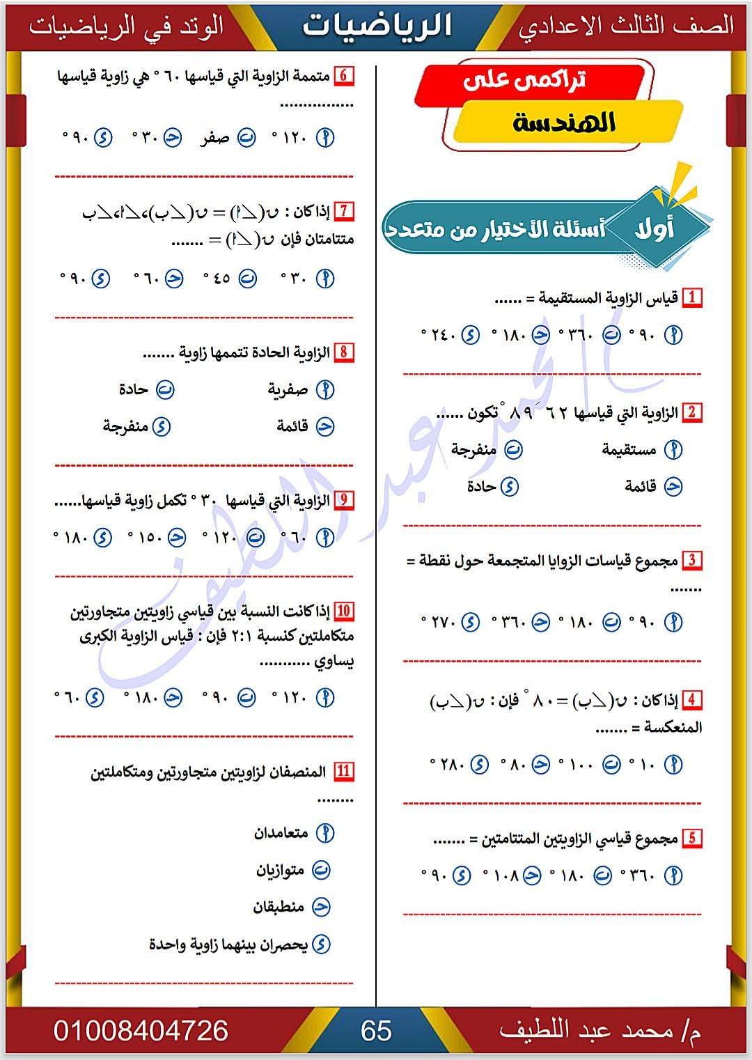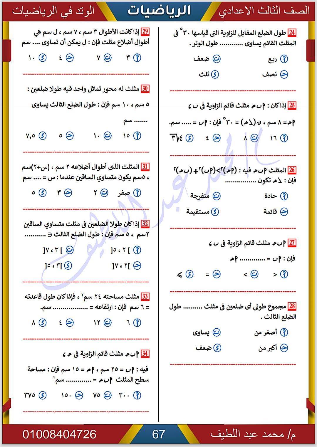 - الرياضيات الصف الثالث الإعدادي