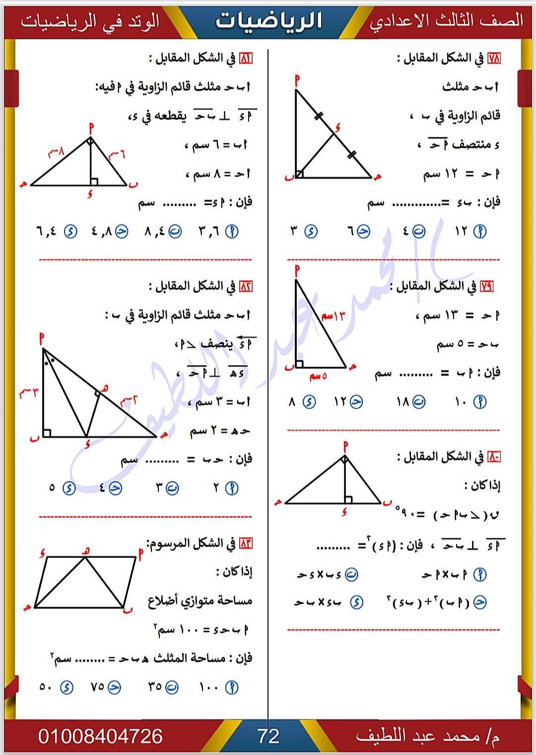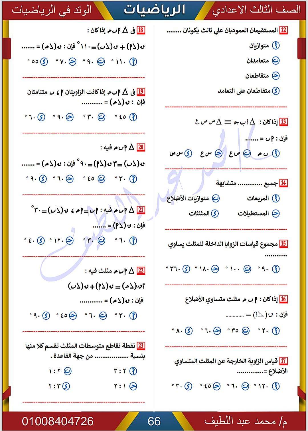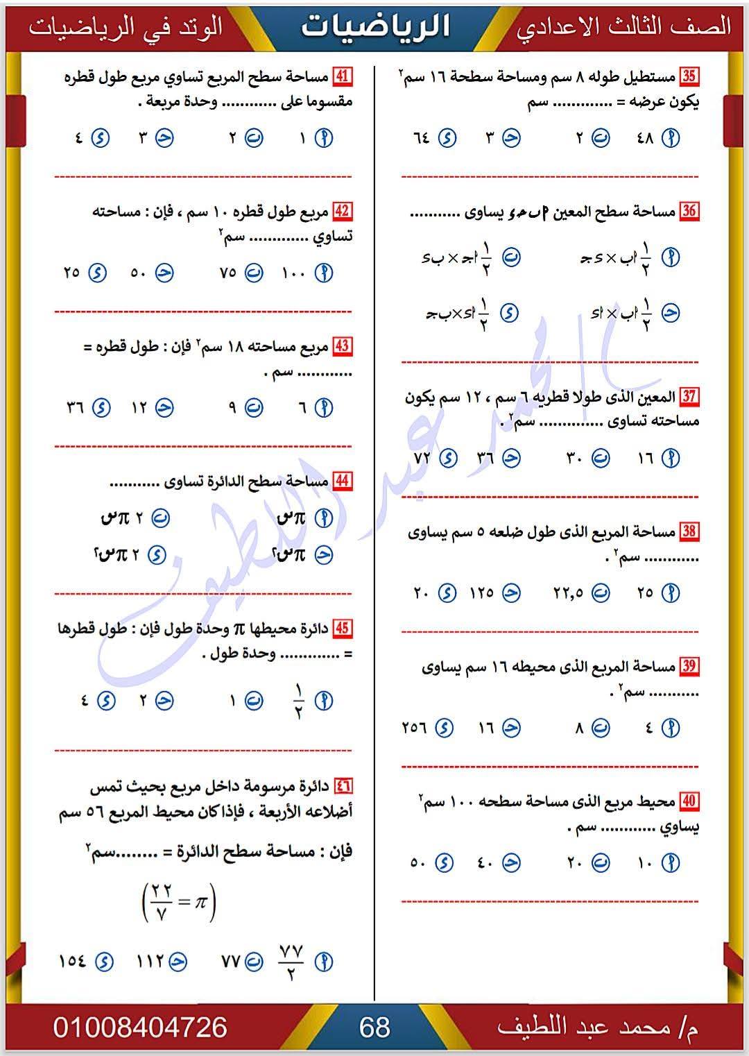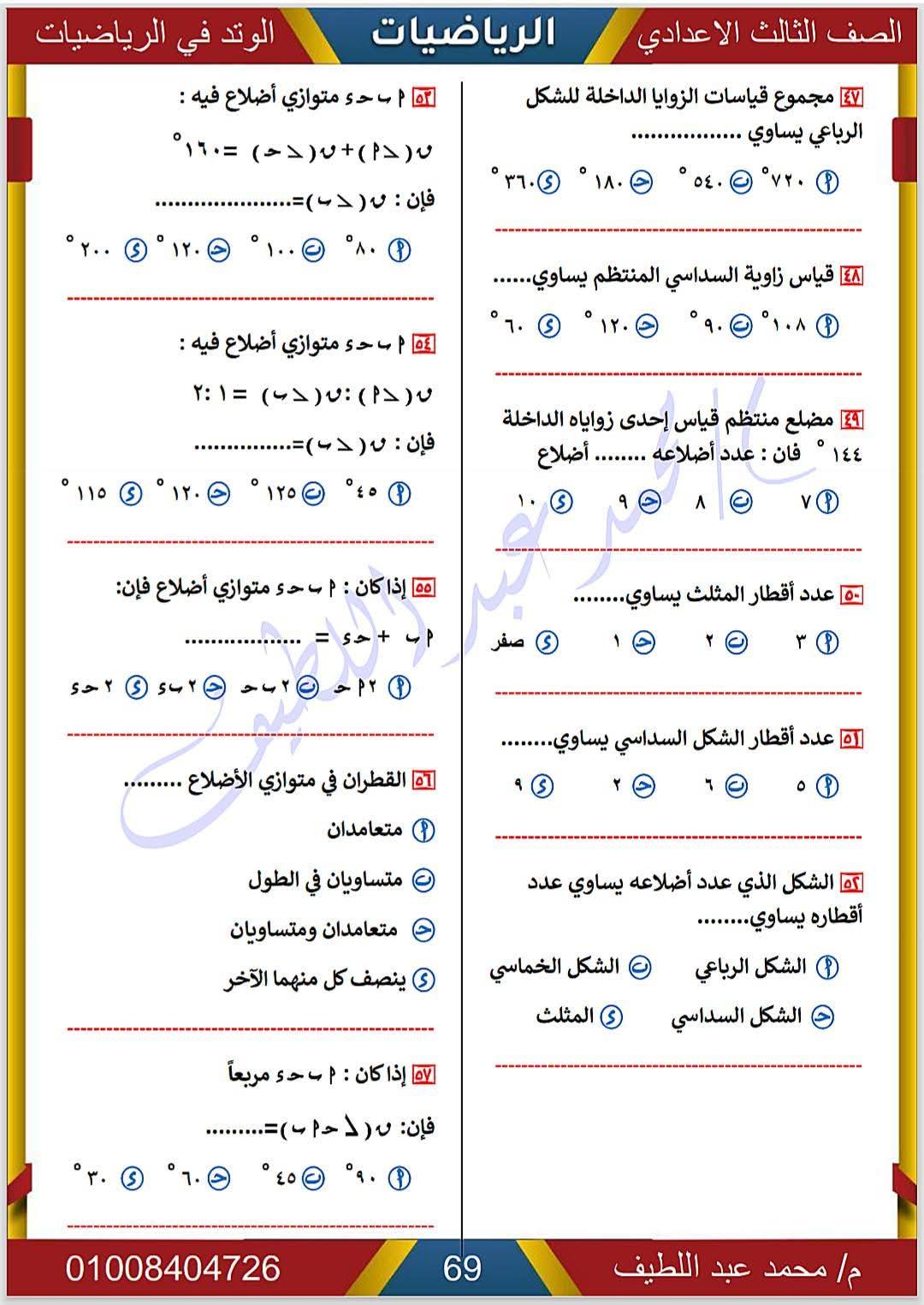 - الرياضيات الصف الثالث الإعدادي