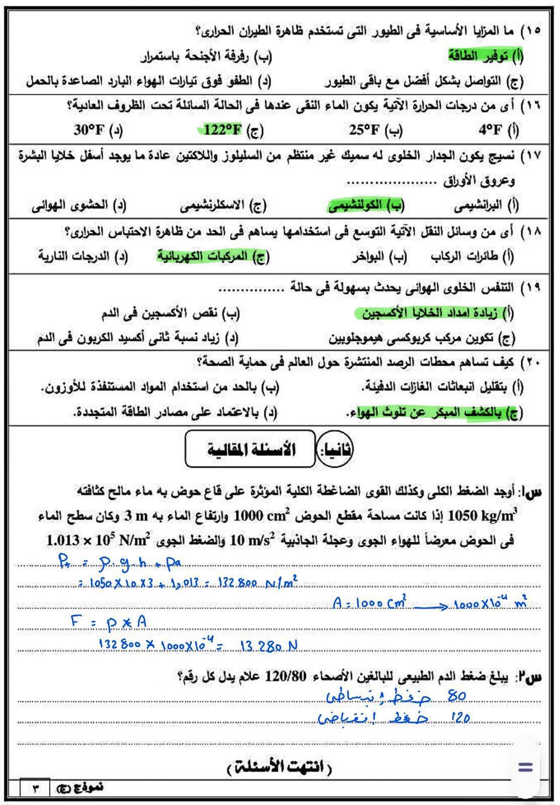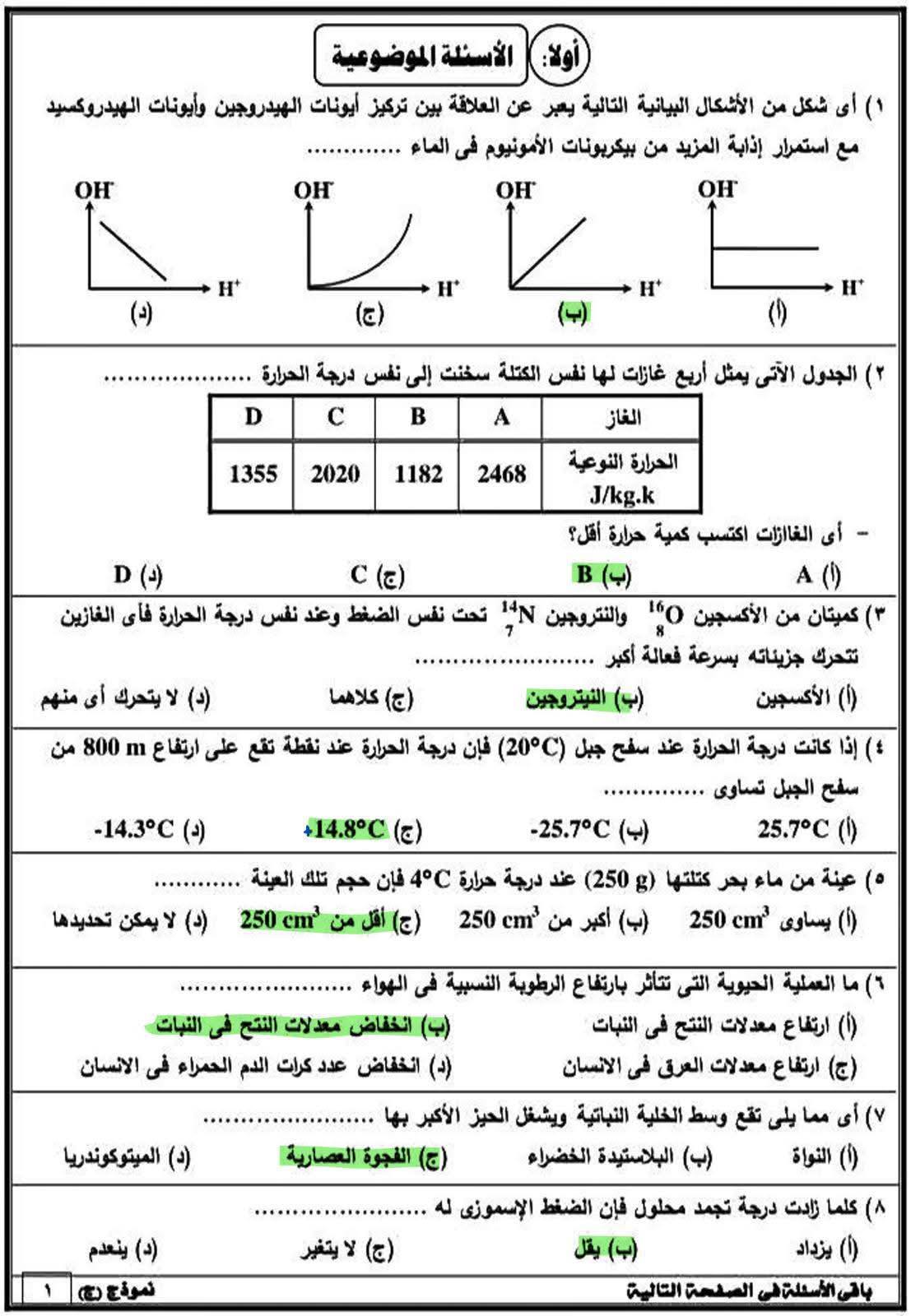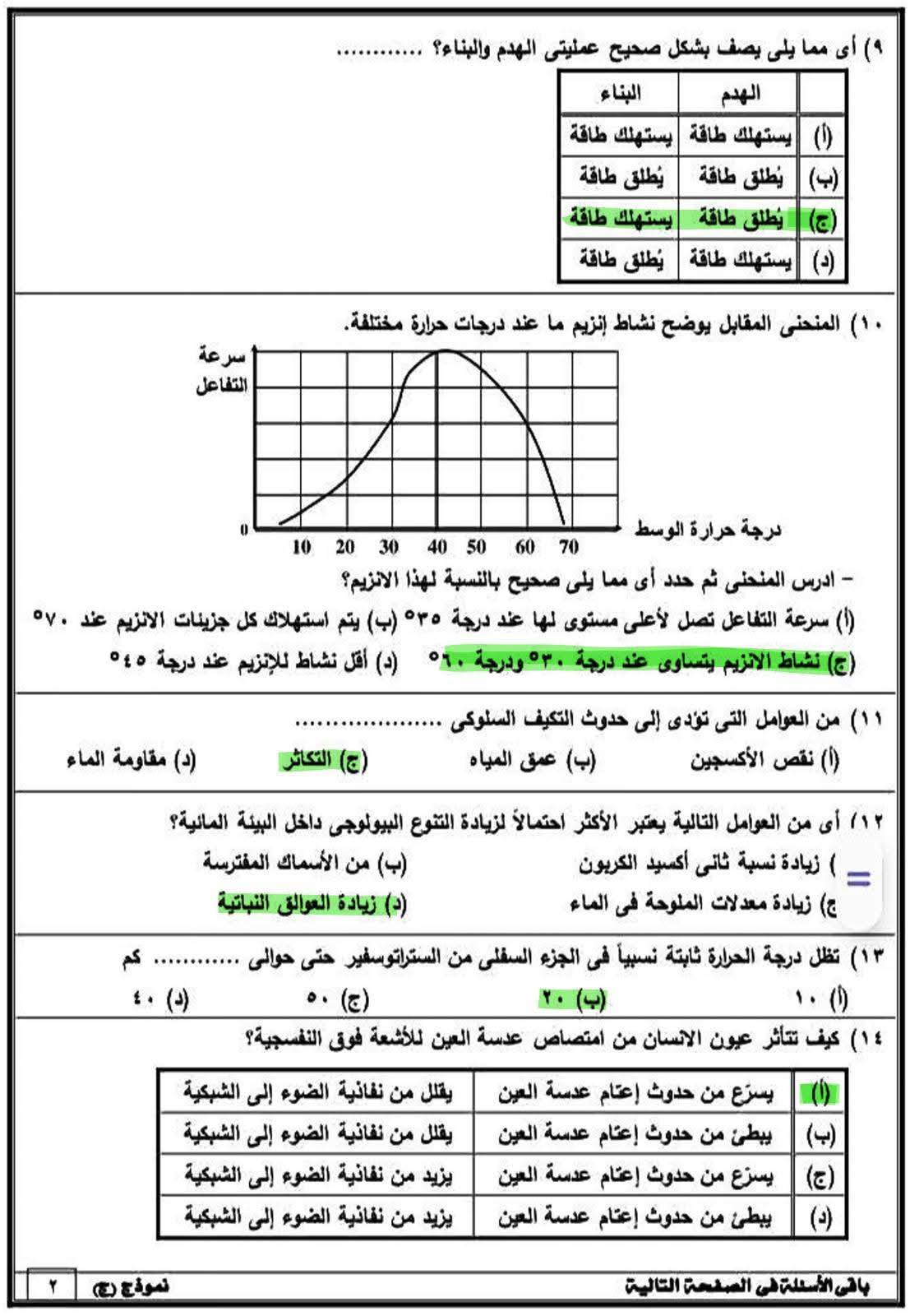 - إجابات امتحان محافظة البحيرة علوم متكاملة