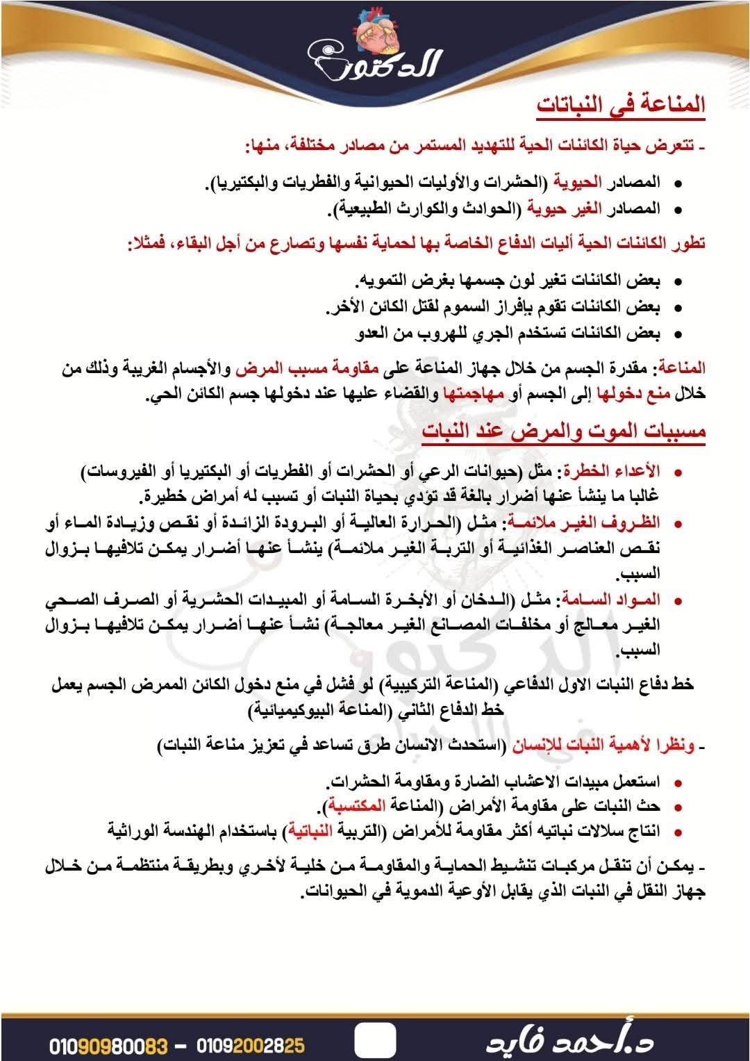 - ملخص درس المناعة في النباتات 3 ورقات في الاحياء