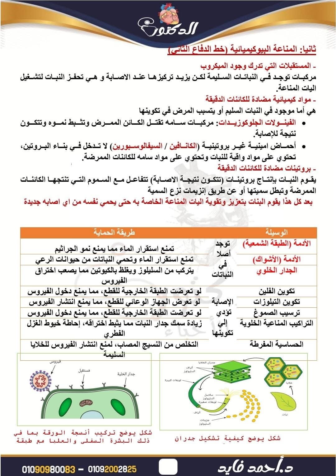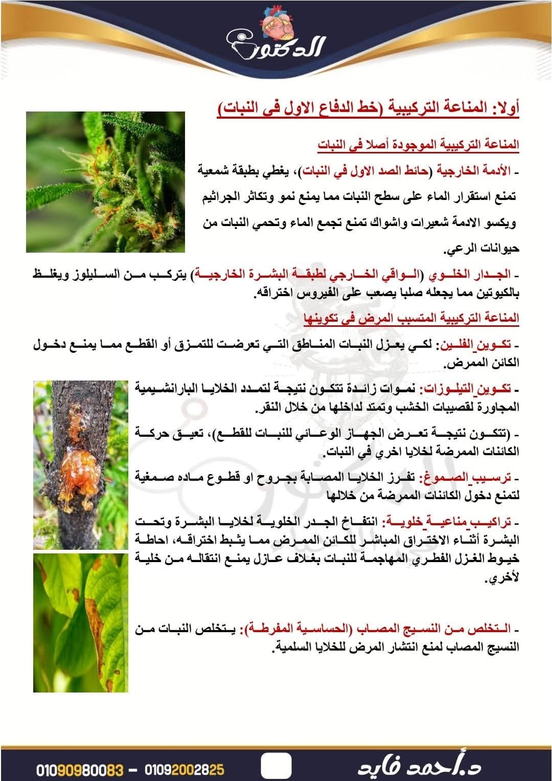 روشتة التفوق.. ملخص درس المناعة في النباتات 3 ورقات في الاحياء ثانوية عامة 2026