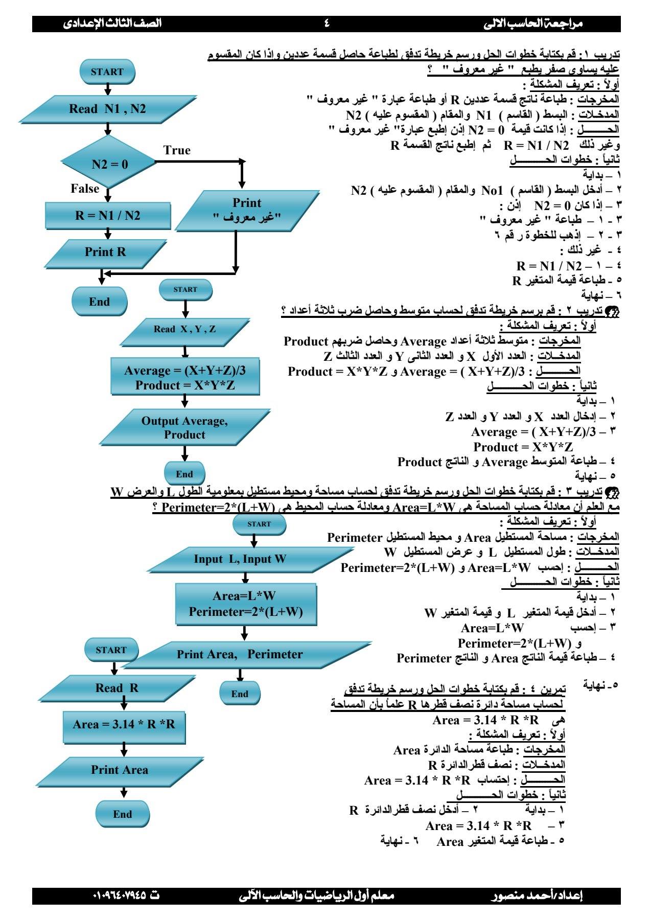 - حلول تمارين الحاسب الآلى ثالثة إعدادي