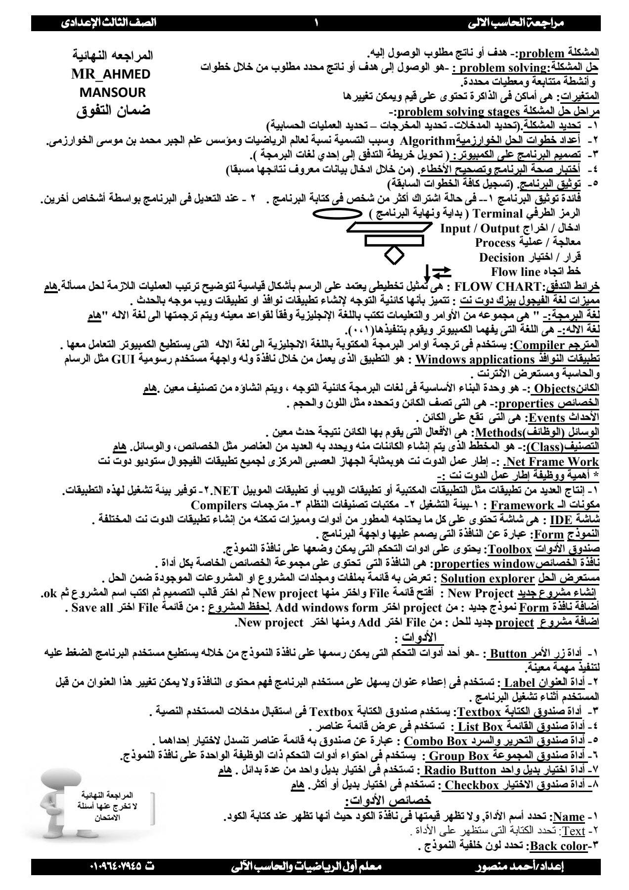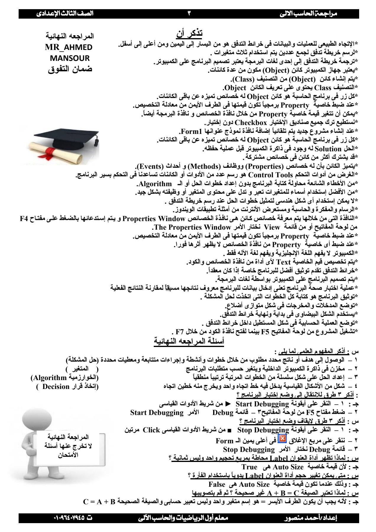 - مراجعة نهائية الحاسب الآلى ثالثة إعدادي