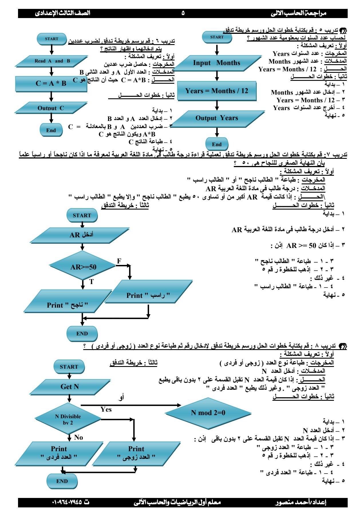 - حلول تمارين كتاب الامتحان الحاسب الآلى ثالثة إعدادي