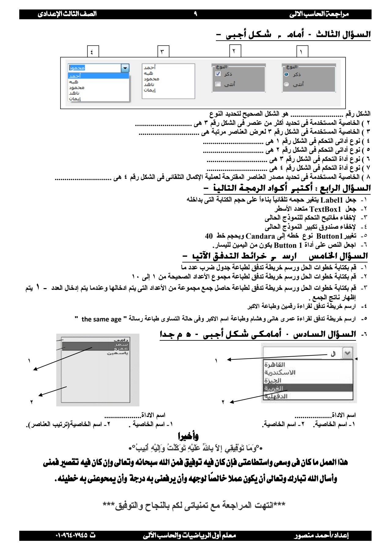 - مراجعات نهائيه امتحان الحاسب الآلى ثالثة إعدادي