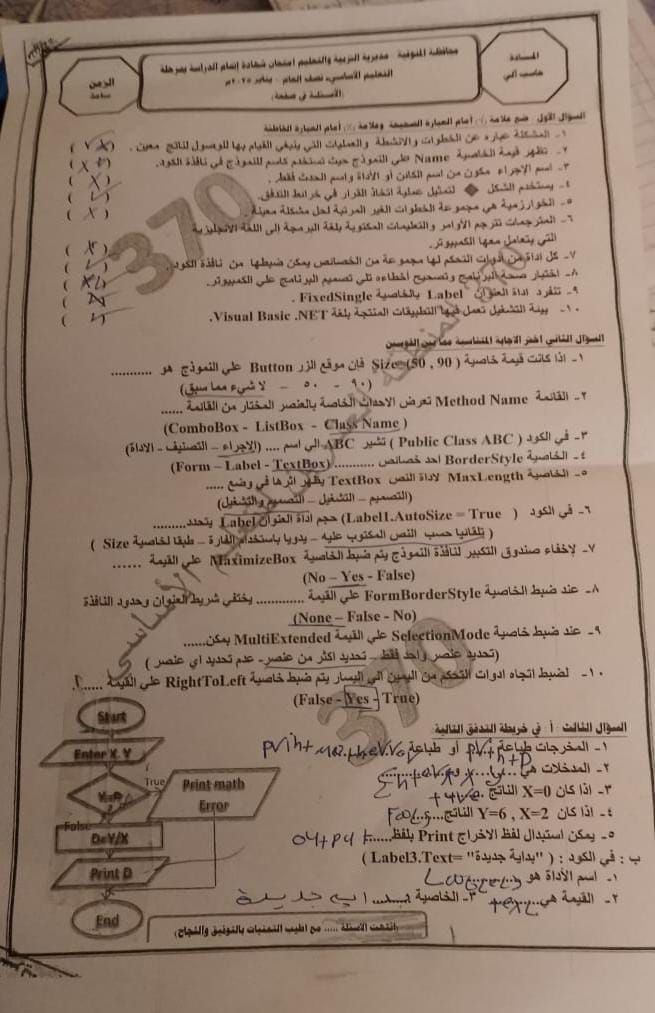 - حل امتحان الحاسب الآلى ثالثة إعدادي نهائي
