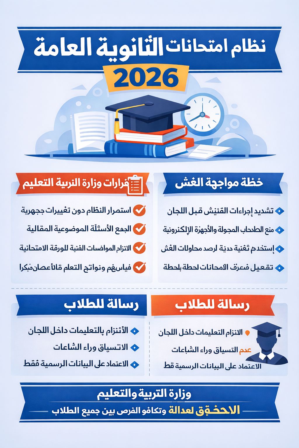 كشفت الوزارة عن حزمة من الإجراءات الصارمة لمواجهة الغش، أبرزها: