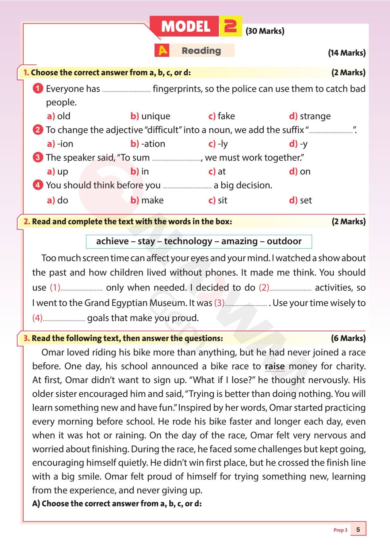 - نموذج الامتحان الثاني في اللغة الإنجليزية لكتاب الأضواء