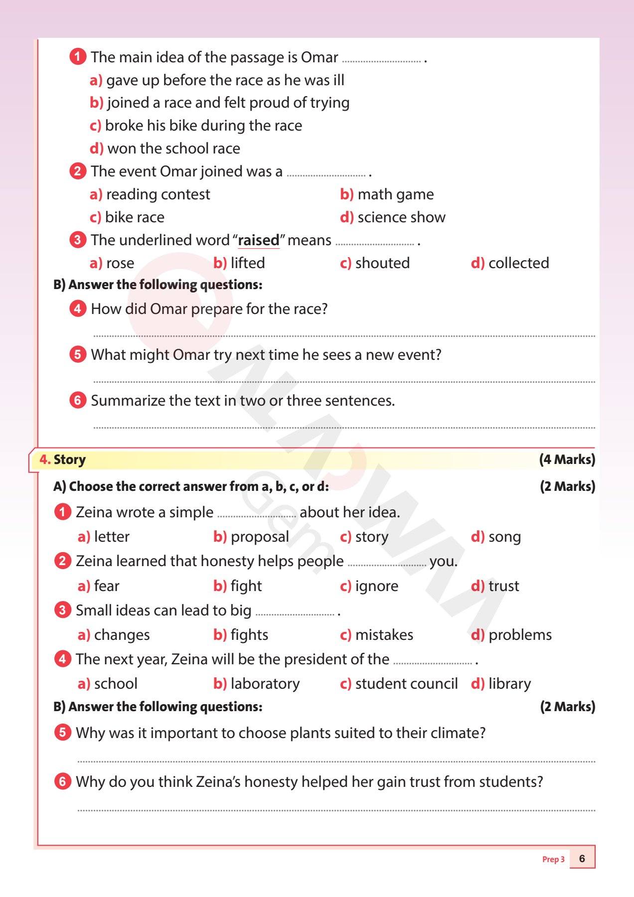 - إجابات امتحان إنجليزي الشهادة الإعدادية