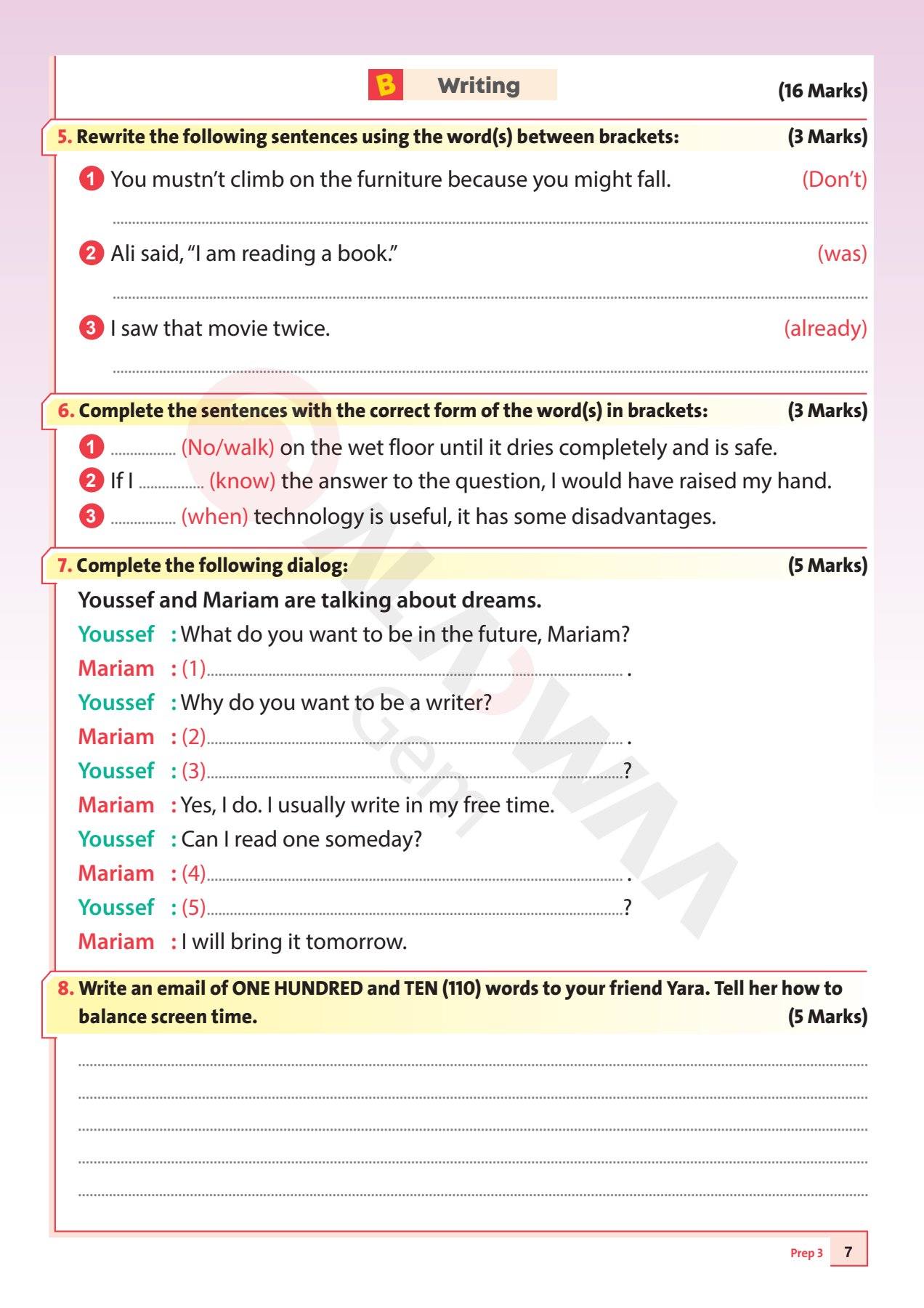 - حل امتحان إنجليزي ثالثة إعدادي pdf