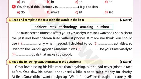 لطلاب ثالثة إعدادي.. نموذج الامتحان الثاني في اللغة الإنجليزية لكتاب الأضواء