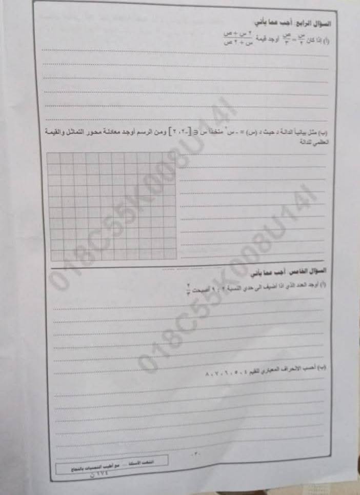 - امتحان جبر الشهادة الاعدادية محافظة المنوفية