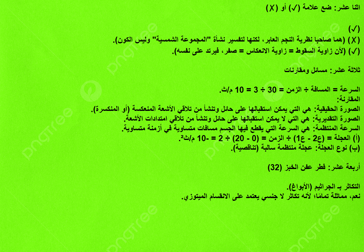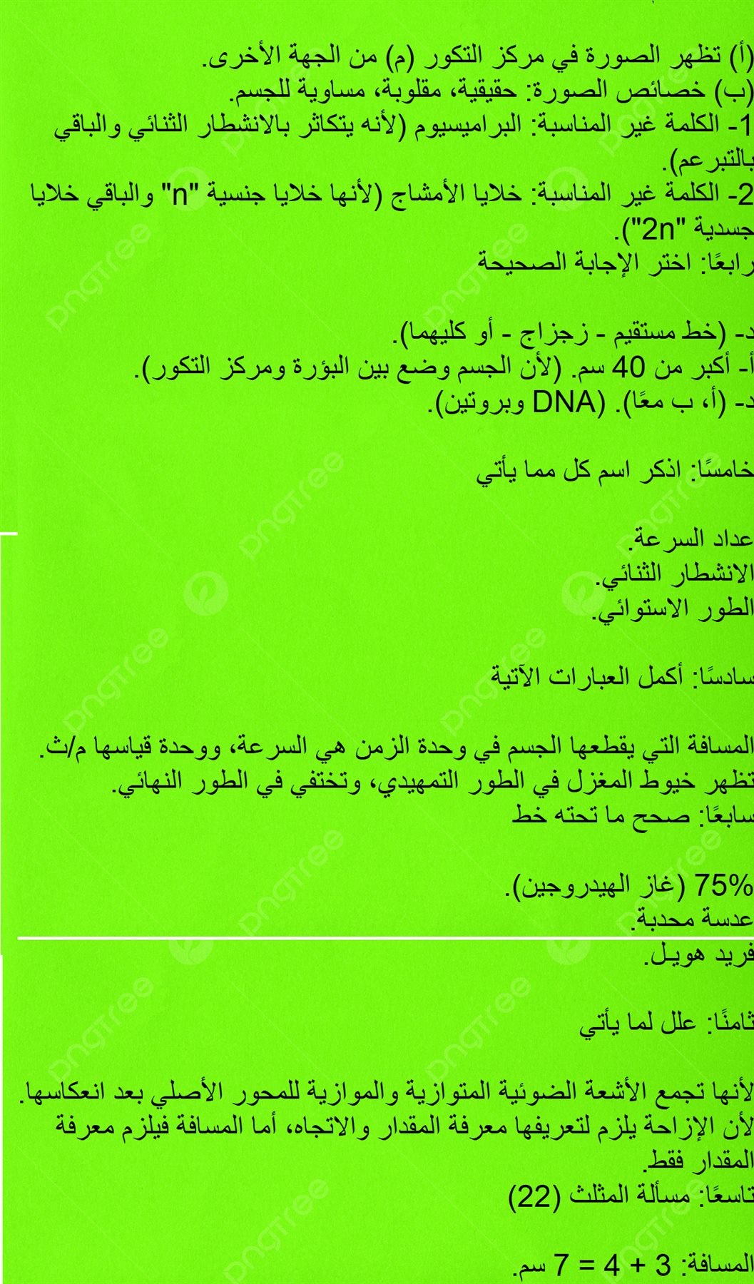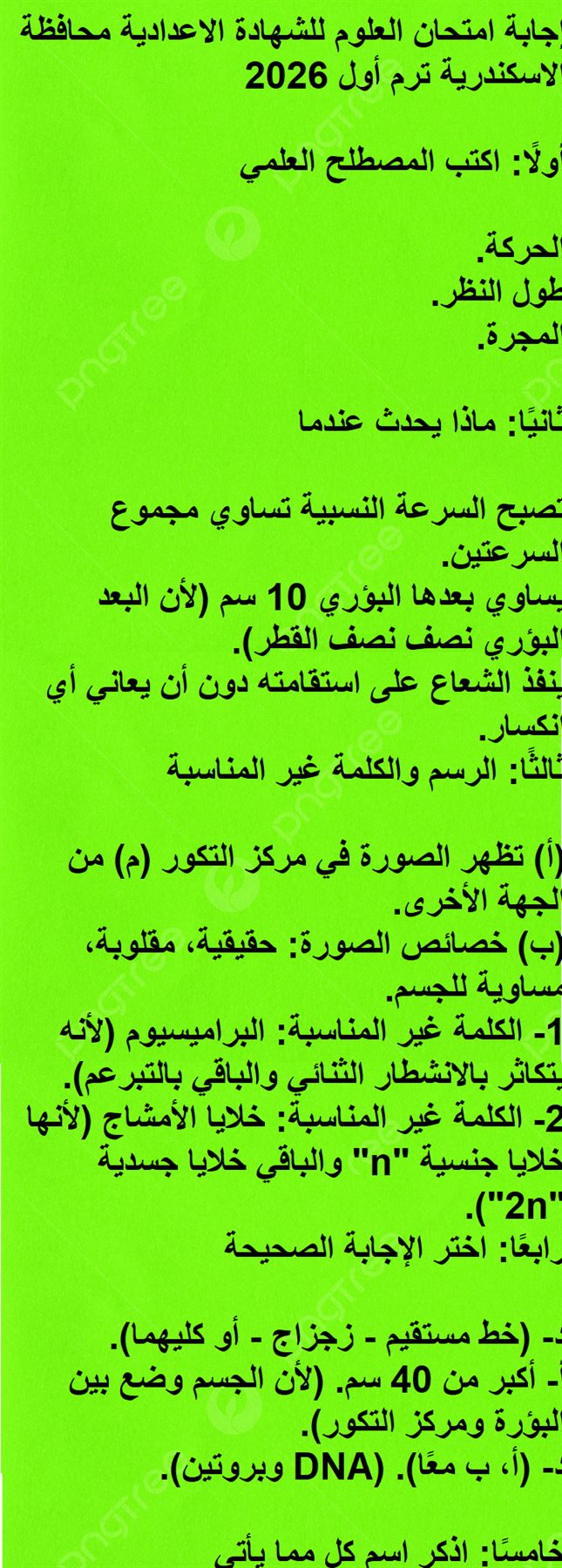 - إجابة امتحان العلوم للشهادة الاعدادية محافظة الاسكندرية