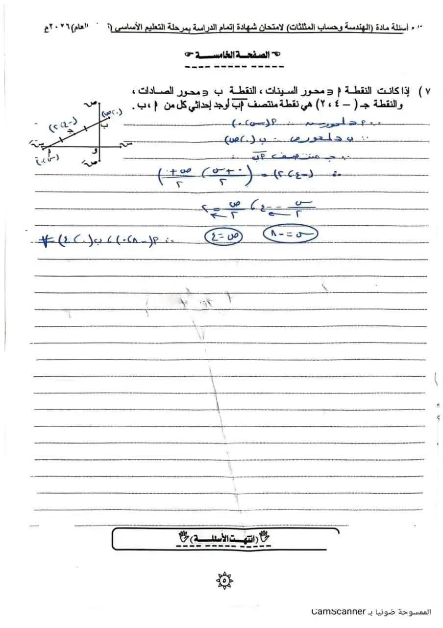 - نموذج إجابة امتحان هندسة ثالثة إعدادي