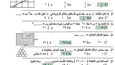 - إجابات امتحان هندسة الشهادة الإعدادية أسيوط
