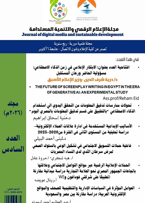 ويصدر هذا العدد تحت رعاية الأستاذ الدكتور ممدوح مصطفى غراب رئيس جامعة 6 أكتوبر، والأستاذ الدكتور ياسر دكروري نائب رئيس الجامعة لشؤون الدراسات العليا والبحوث، والأستاذة الدكتورة دينا فاروق أبوزيد عميدة كلية الإعلام وفنون الاتصال، بما يعكس الدعم المؤسسي المتواصل للجامعة والكلية للبحث العلمي والنشر الأكاديمي الرصين.