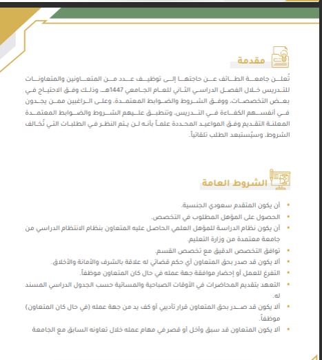 الشروط الواجب توافرها في وظائف جامعة الطائف