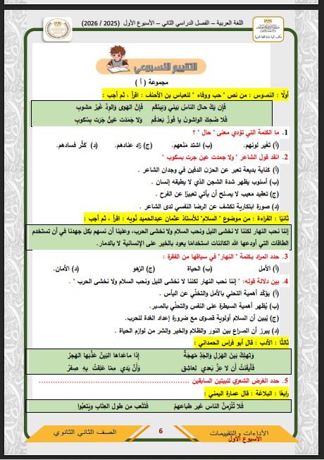 - حل التقييم الاسبوعي للصف الثاني الثانوي عربي pdf