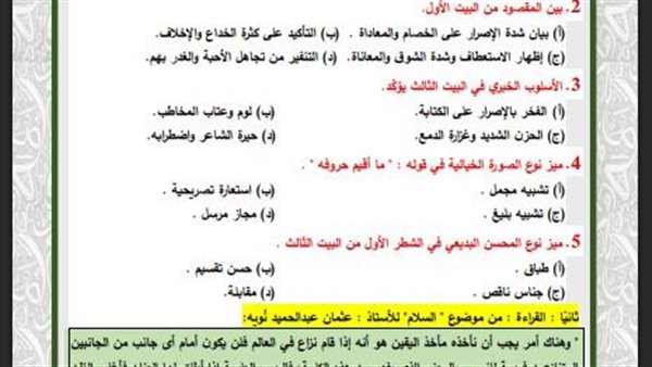 - مراجعات نهائيه امتحان اللغة العربية ثانية ثانوي