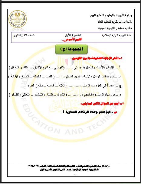 - مراجعات نهائيه امتحان التربية الاسلامية ثانية ثانوي
