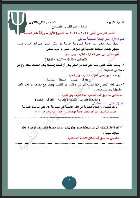 - الصف الثاني الثانوي علم النفس والاجتماع