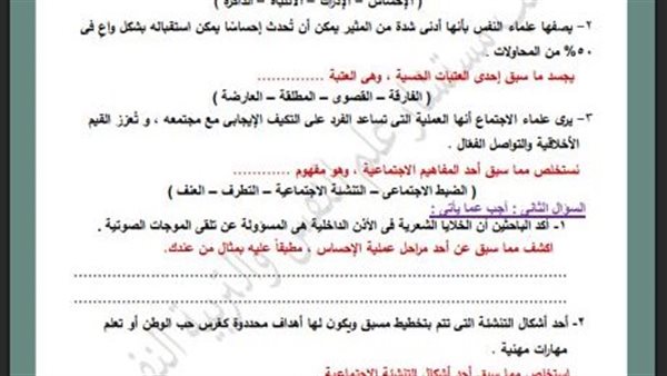 - مراجعات نهائيه امتحان علم النفس والاجتماع ثانية ثانوي