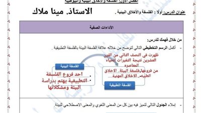 مراجعات نهائية.. إجابة تقييم الاسبوع الاول فلسفة ومنطق اولى ثانوي ترم ثاني