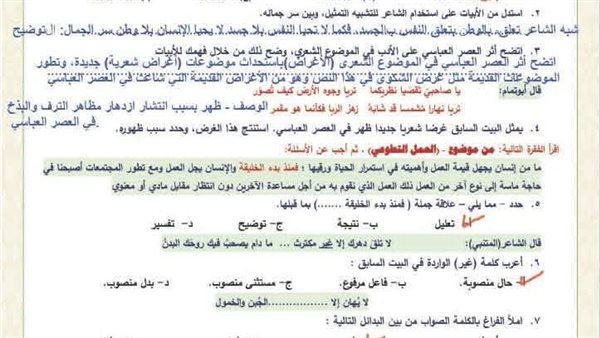 - نماذج أسئلة عربي أولى ثانوي ترم ثاني