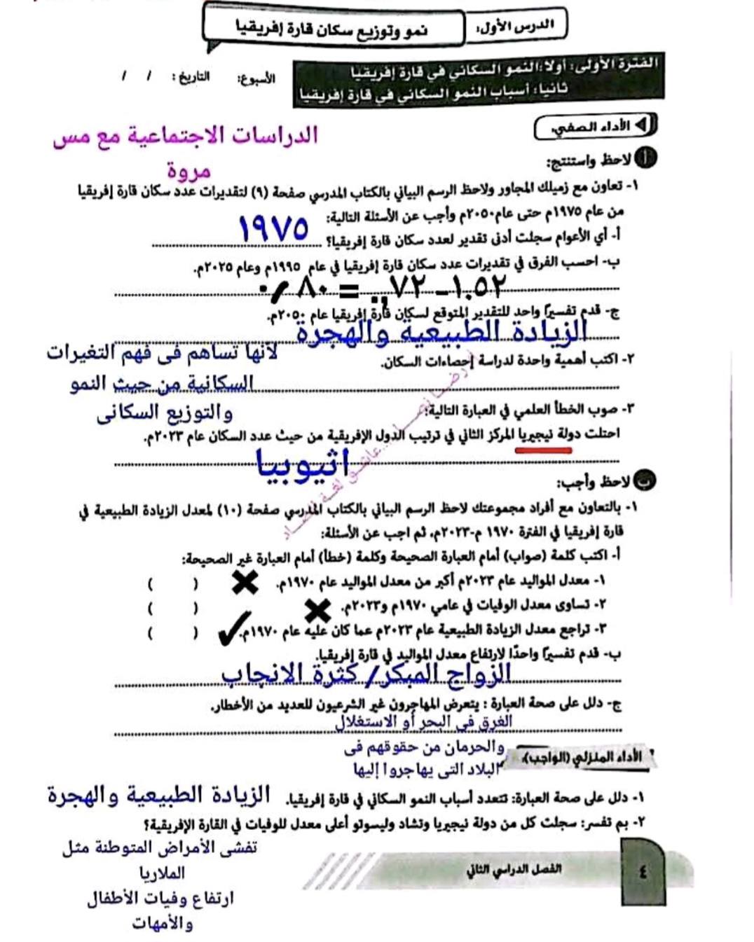 - تقييم الأسبوع الأول الدراسات الاجتماعية ترم ثاني