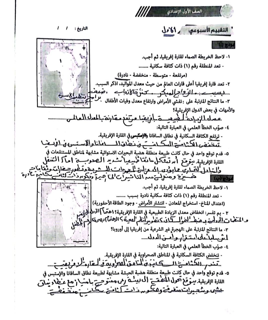 حل أسئلة تقييمات الأسبوع الأول الدراسات الاجتماعية لـ الصف الأول الإعدادي ترم ثاني