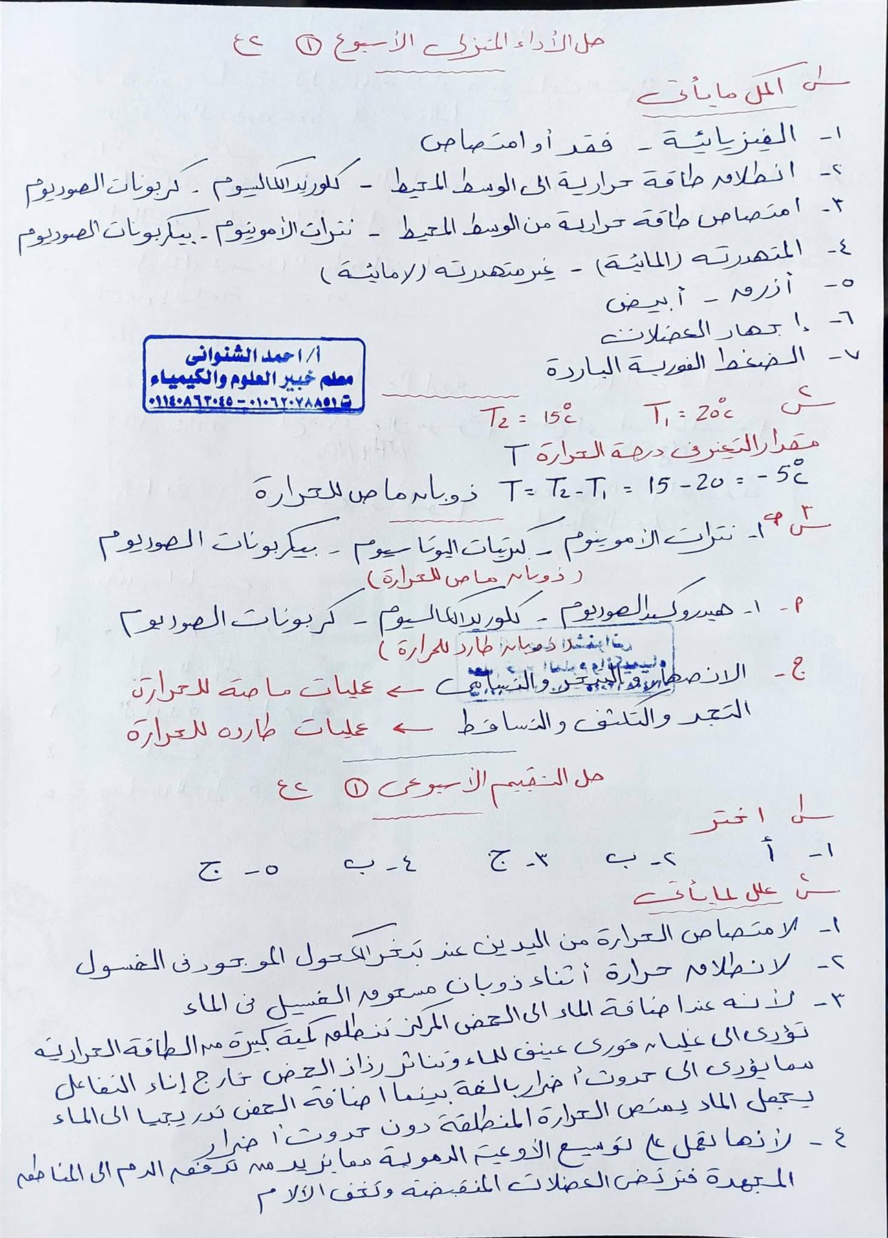 - مراجعات نهائيه امتحان العلوم ثانية إعدادي ترم ثاني